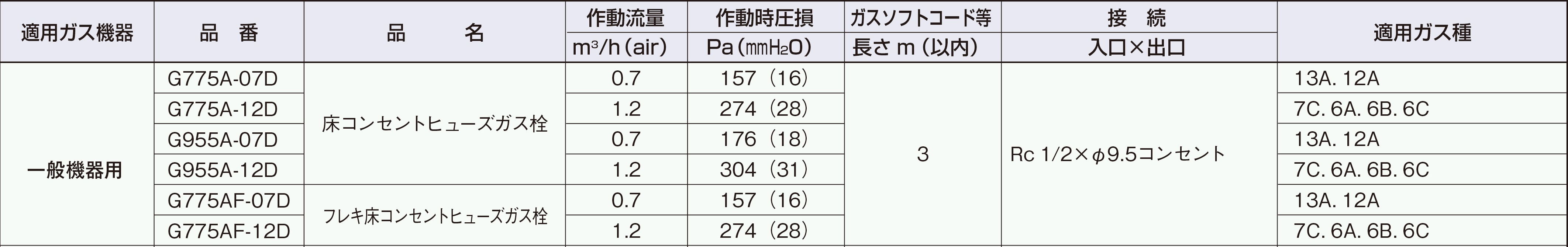 床コンセントヒューズガス栓/都市ガス用