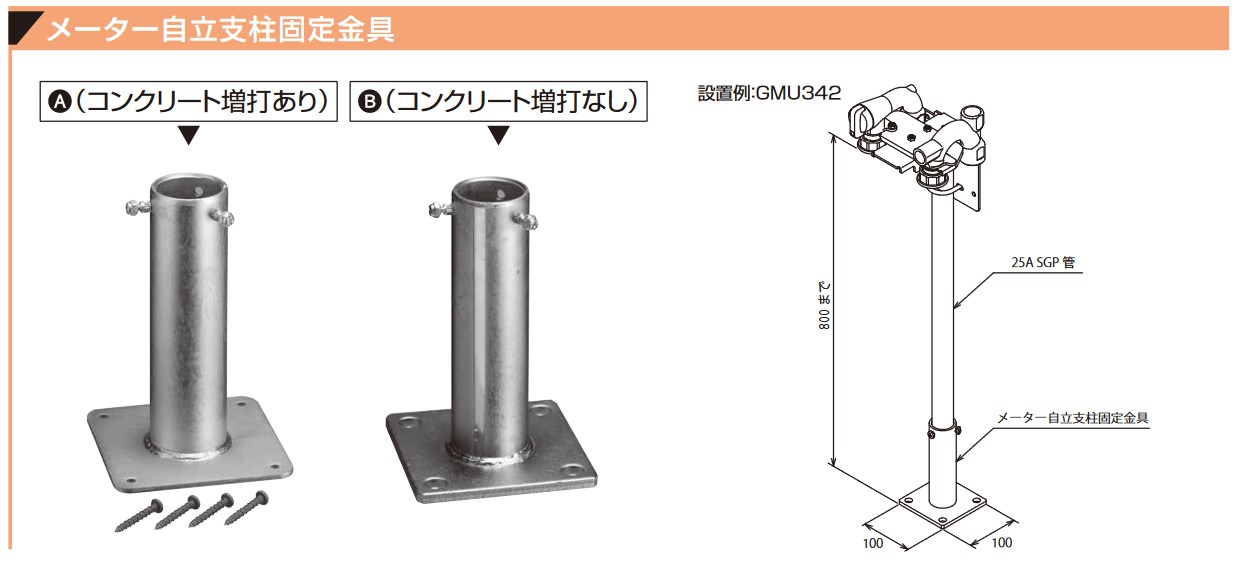> メーター自立支柱固定金具