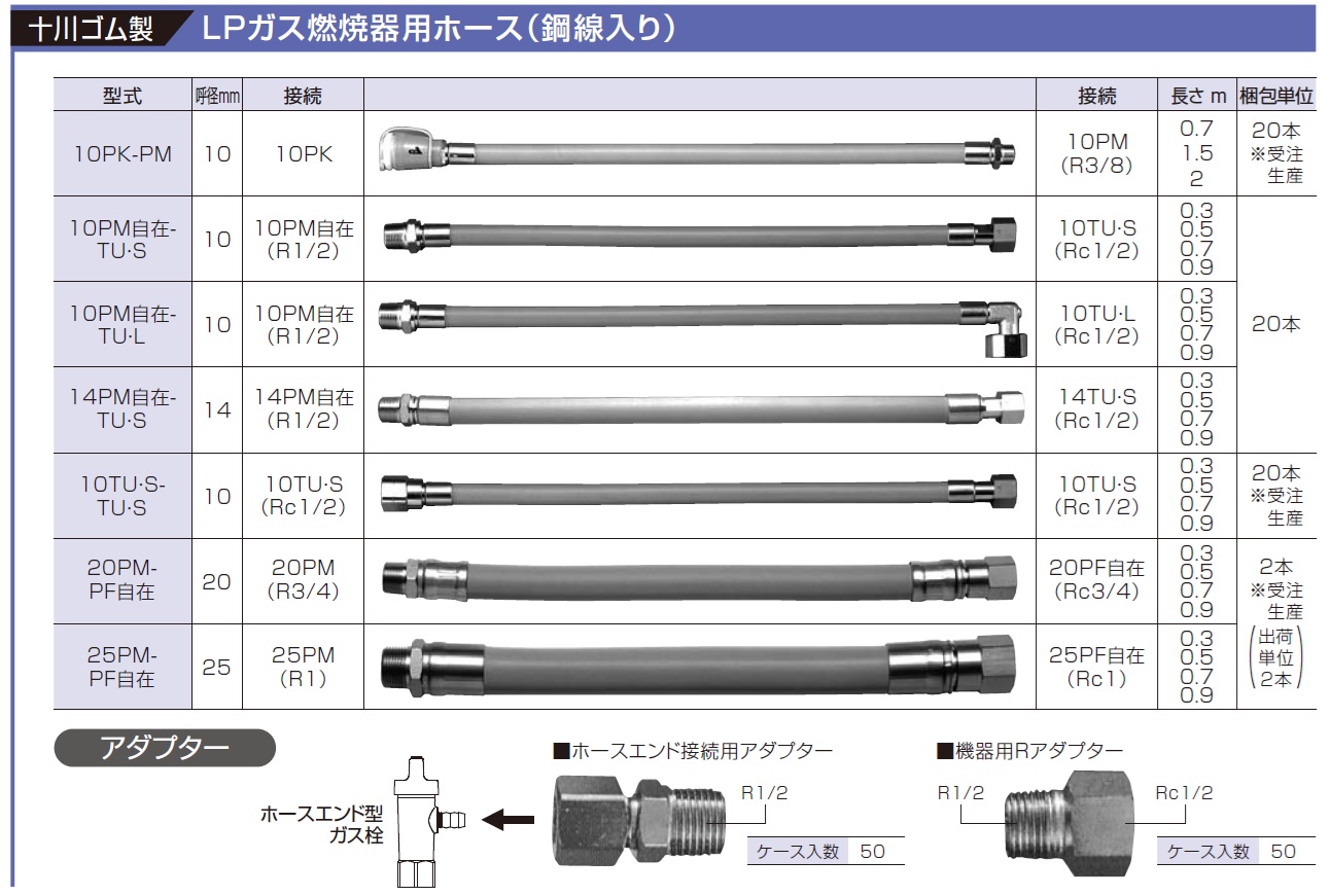 LPガス燃焼器用ホース(鋼線入り)【十川ゴム製】