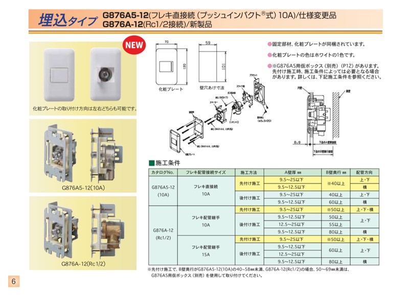G876A5用仮ボックス(別売)があります。先付け施工時、施工条件によっては必要となる場合があります。詳しくは、取付説明書を参照ください。