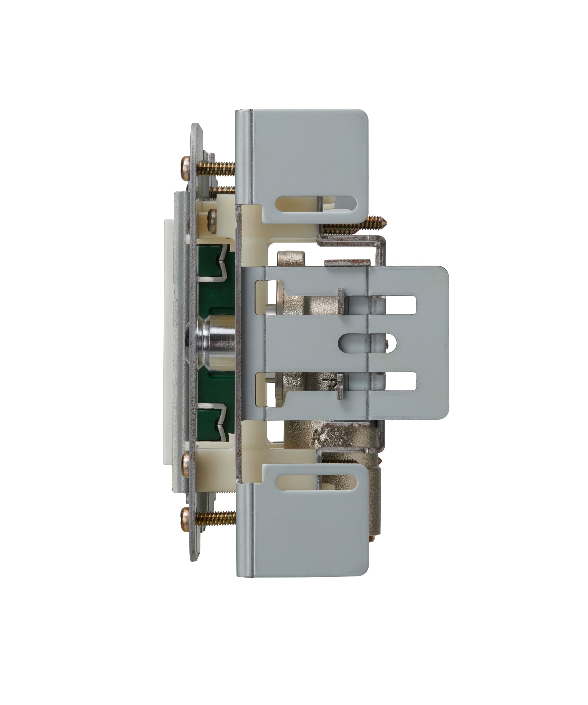 固定部材、電気二口コンセント部材、化粧プレート(ホワイト)が同梱されています。